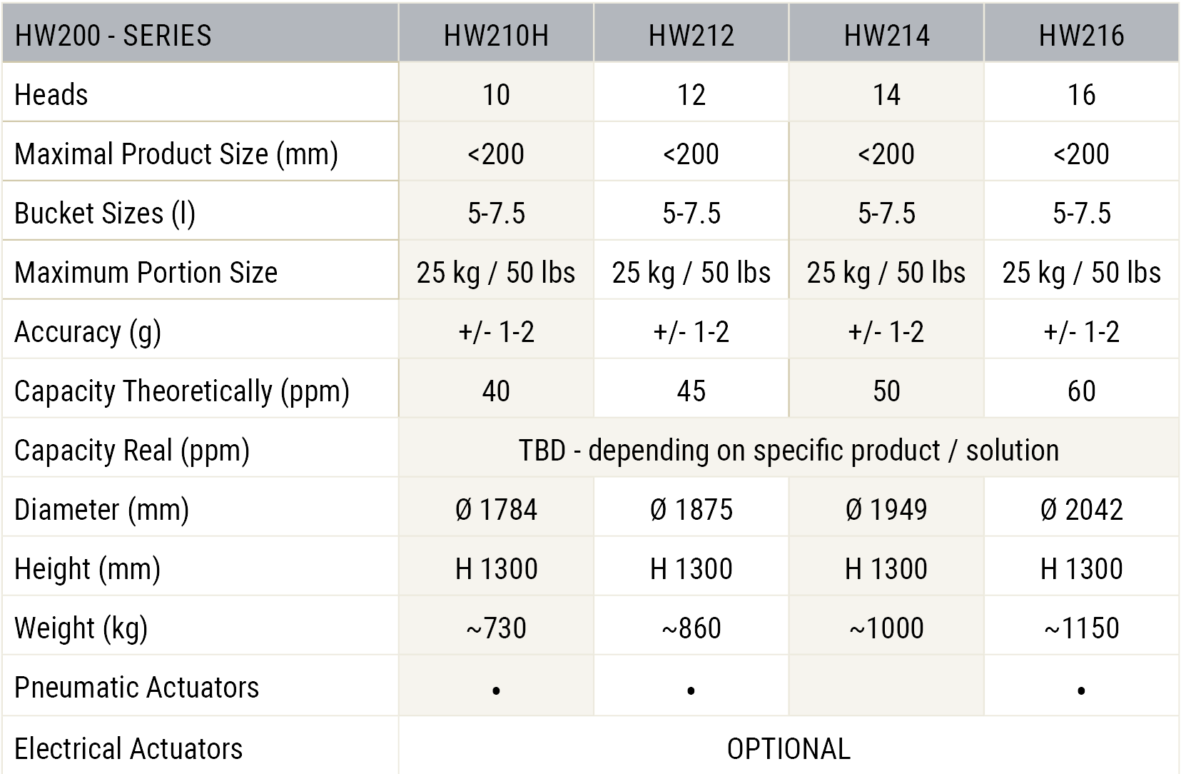 Hardware multihead weighers
